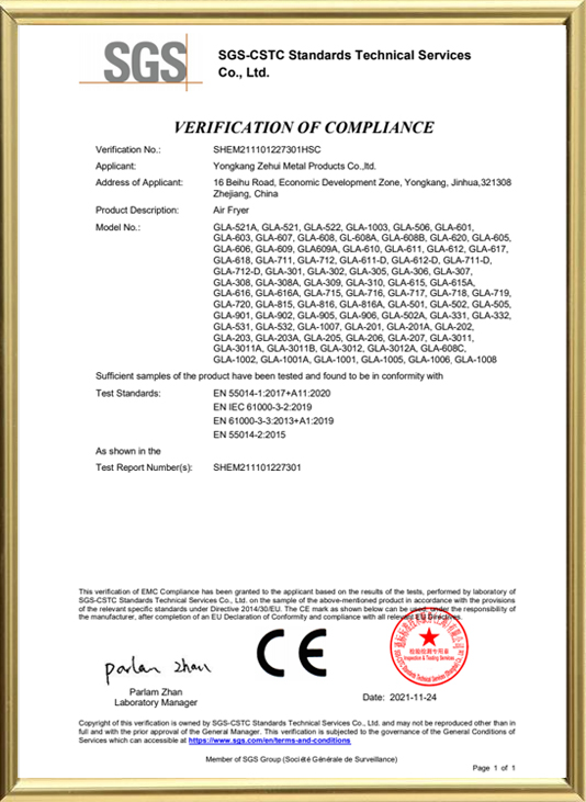 Yongkang Zehui Metal Product Co. Ltd is a company specialized in designing, manufacturing & exporting the specific Home Kitchen Cooking Appliance - AIR FRYER, as China Custom GLA-205 2 qt. vortex Mini Air Fryer Factory,which meet the FDA, LFGB, CE, CB, GS, ROHS, REACH, ETL, INMETRO, CCC,approval standards.